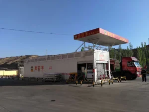 Skid-mounted containerized gas station